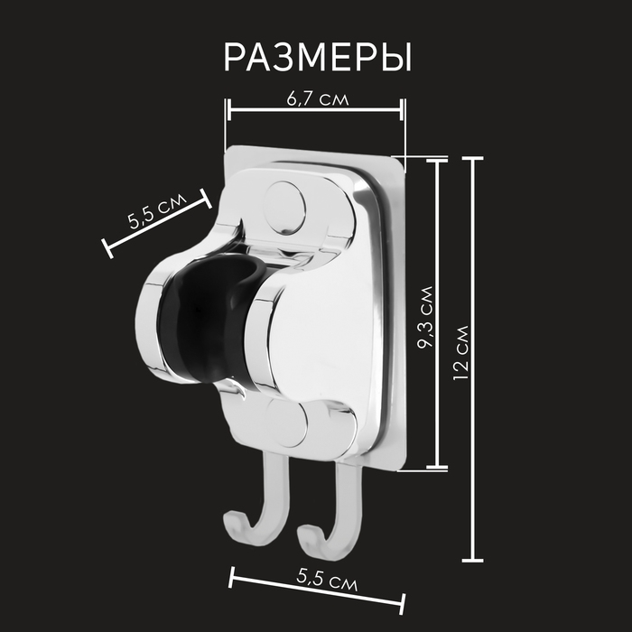 Держатель для душевой лейки ZEIN Z123, самоклеющейся, регулируемый, с крючком, хром