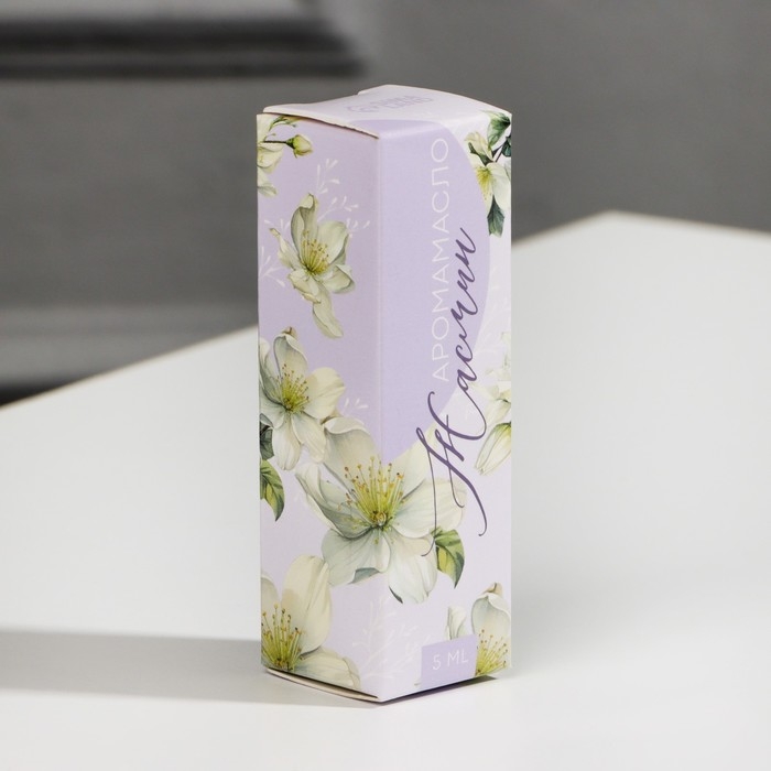 Бутылочка объемом 10 мл заключена в красивую картонную коробочку с изображением жасмина.