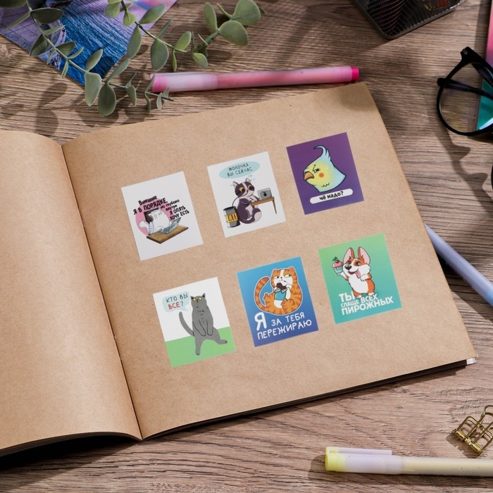 Наклейки-стикеры, набор,«Лайки от котика», 6 х 7 см, 50 шт