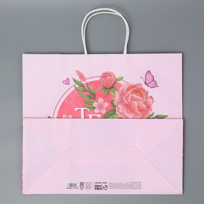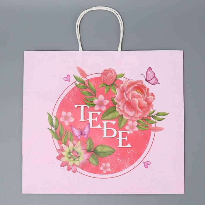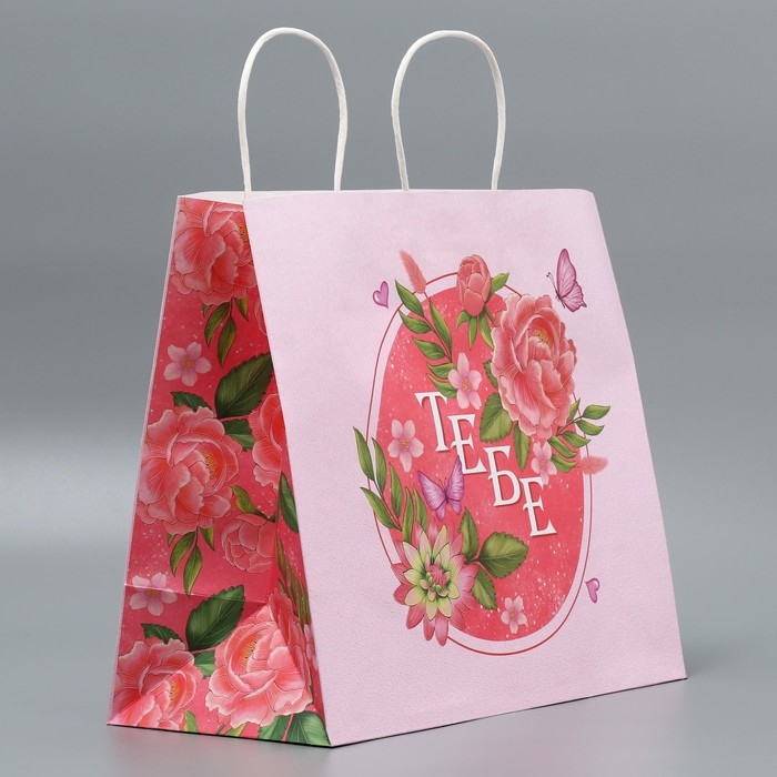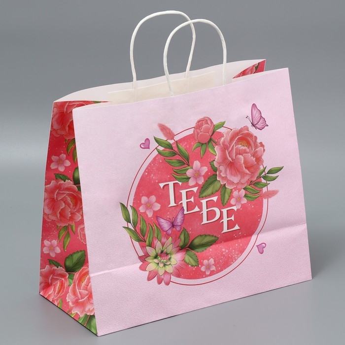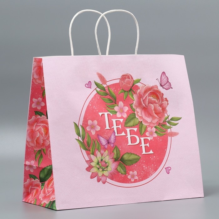 Пакет подарочный крафтовый, упаковка, «Тебе», цветы, 32 х 28 х 15 см