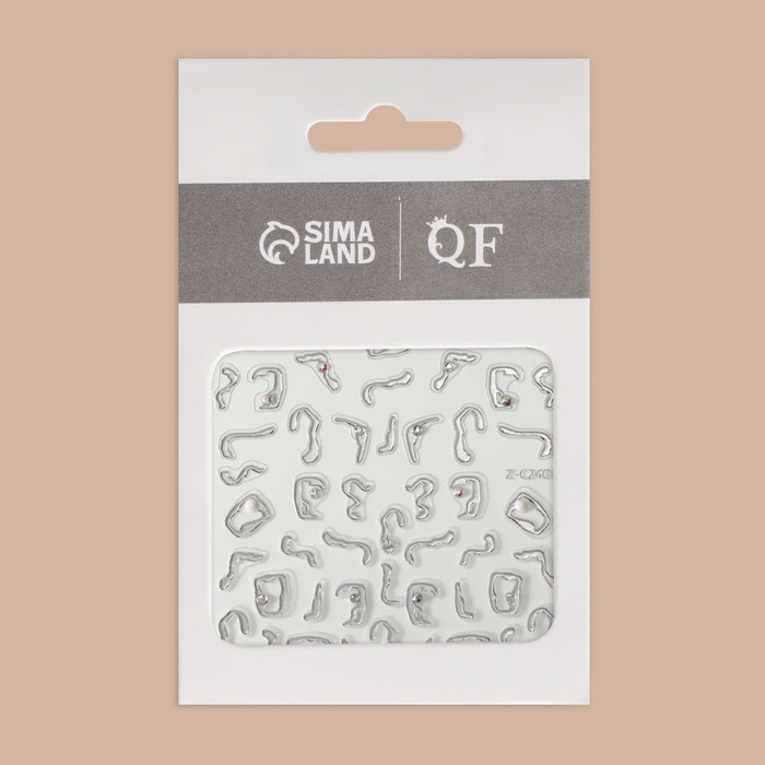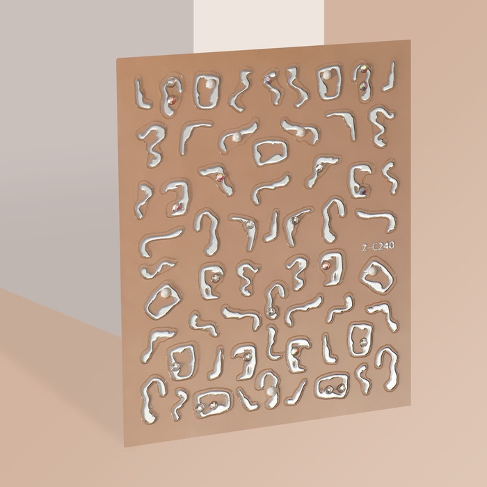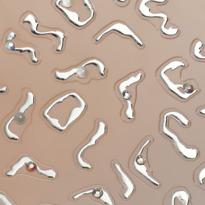 Наклейки для ногтей «Блики», объёмные, металлизированные, со стразами и бусинами, цвет серебристый