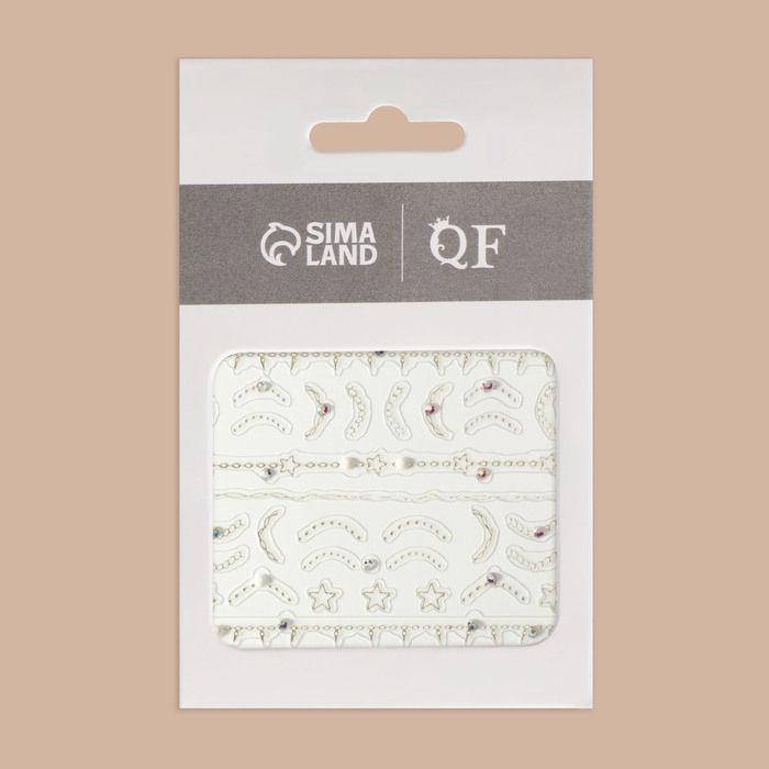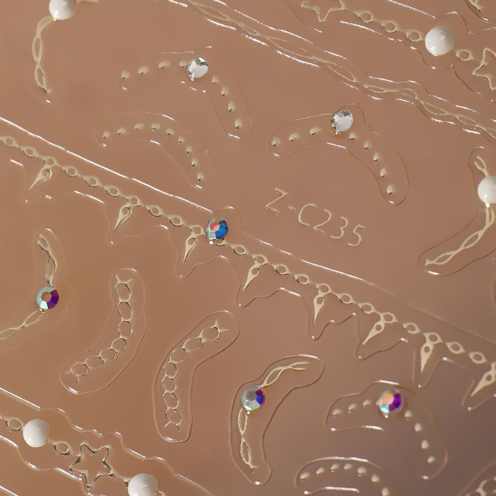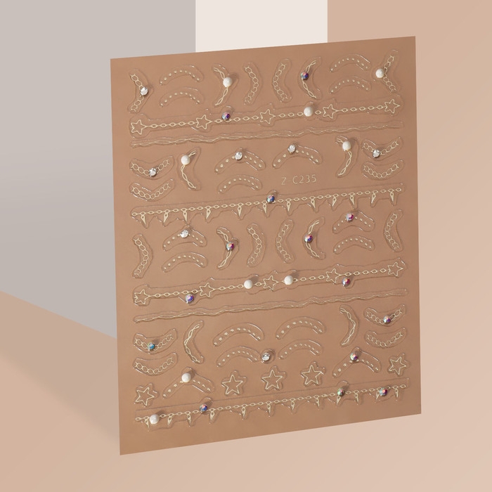 Наклейки для ногтей «Цепи», объёмные, фольгированные, со стразами и бусинами, цвет золотистый