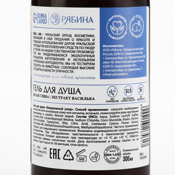 Гель для душа с белой глиной и экстрактом василька, 300 мл, ECO LAB by URAL LAB