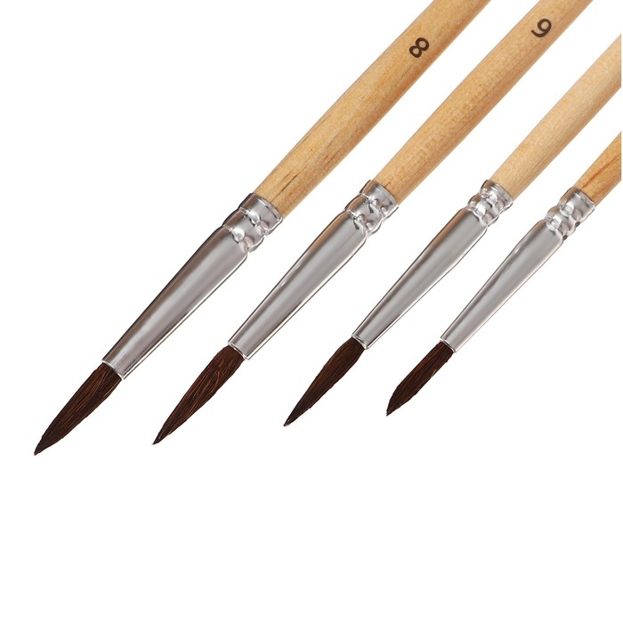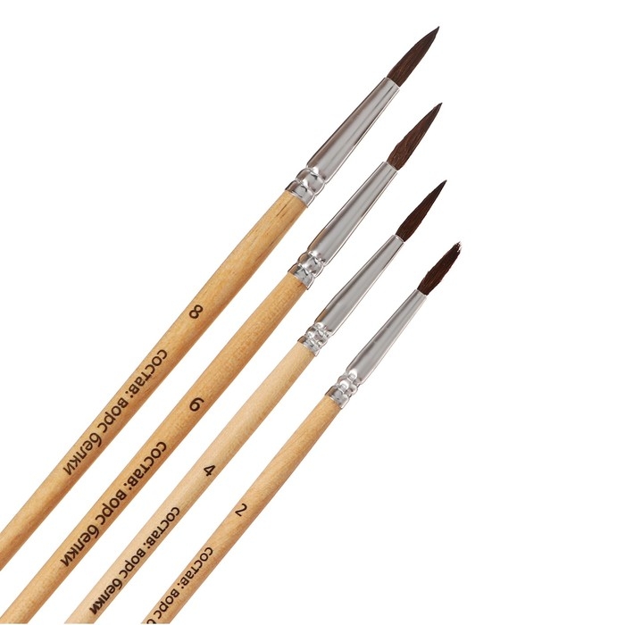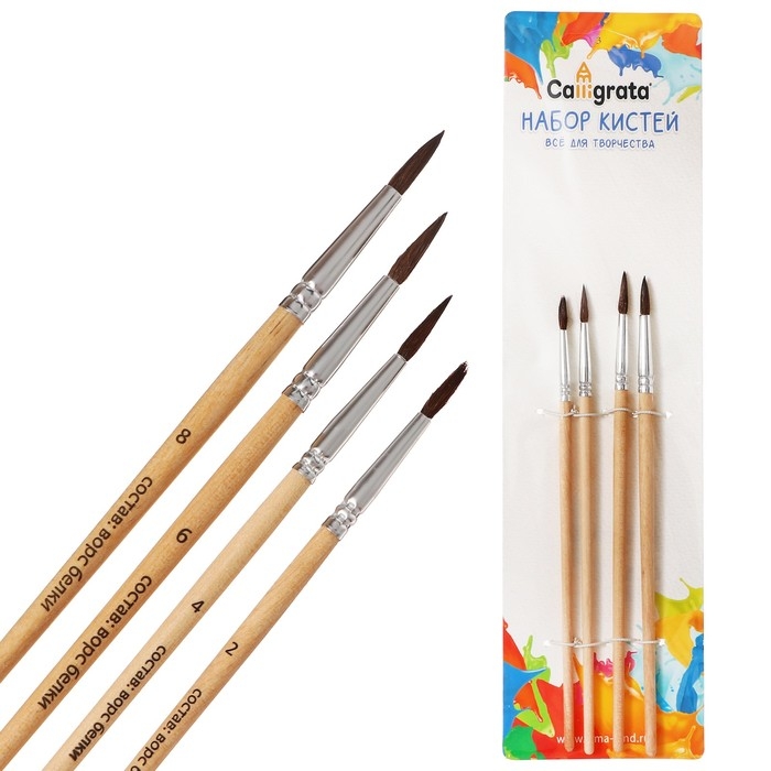 Набор кистей белка, Calligrata, круглые, 4 штук (№2,4,6,8) с деревянными ручками, в блистере