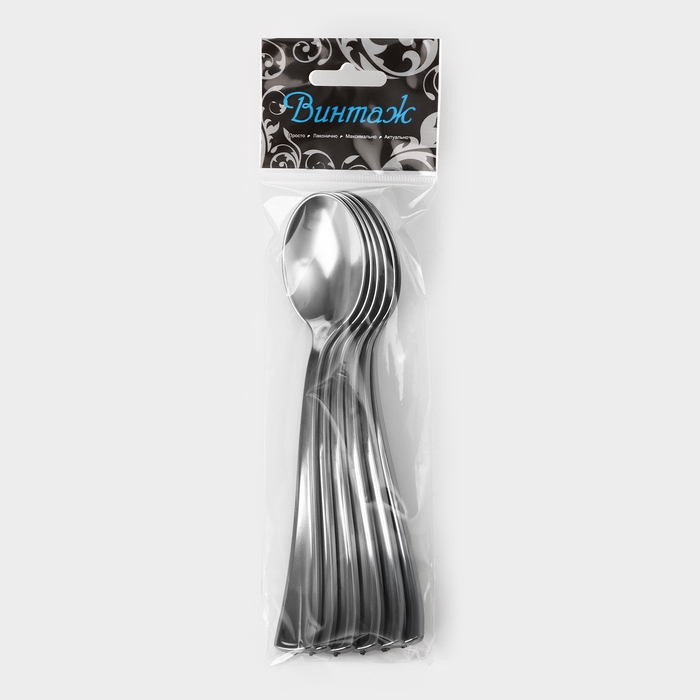 Ложка пластиковая одноразовая, 17,5 см, цвет металлик, 6 шт/уп