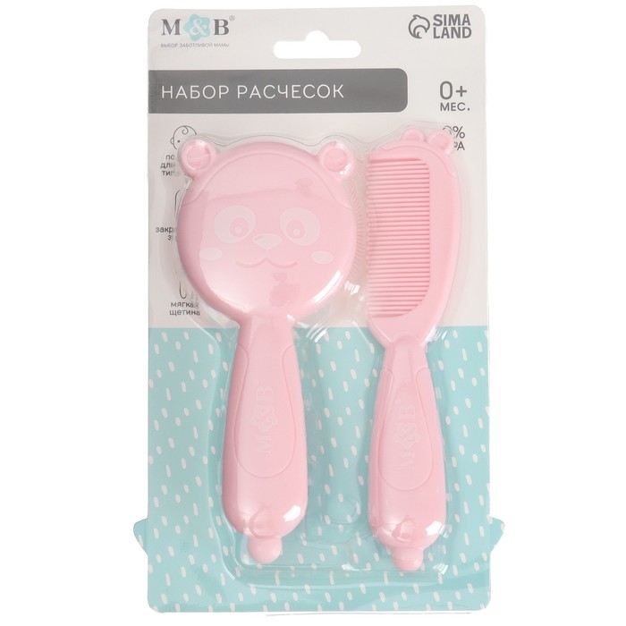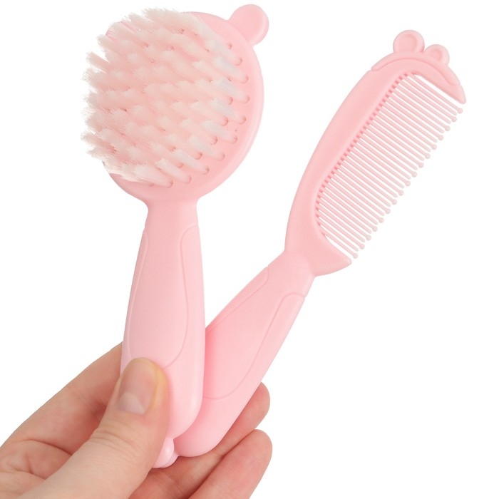 Набор для ухода за волосами: расческа и щетка «Мишка», цвет розовый