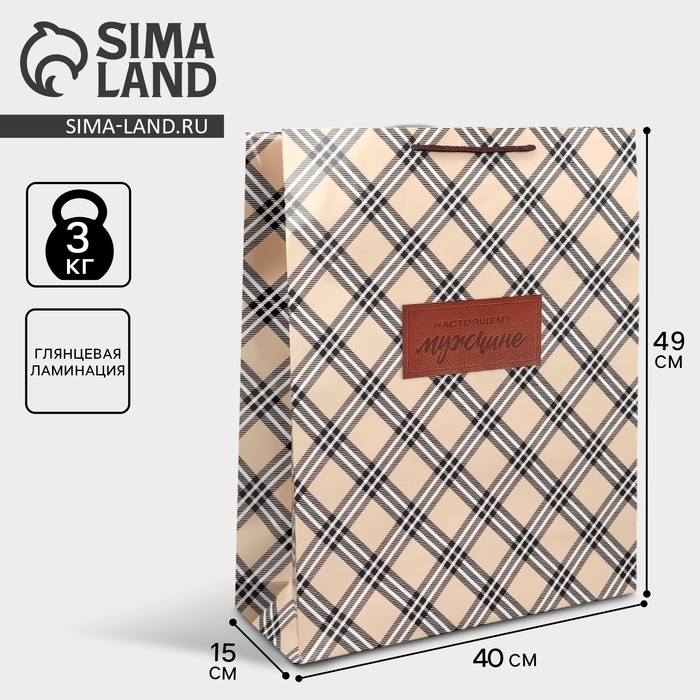 Пакет подарочный ламинированный, упаковка, «Настоящему мужчине», XL, 40 х 49 х 15 см