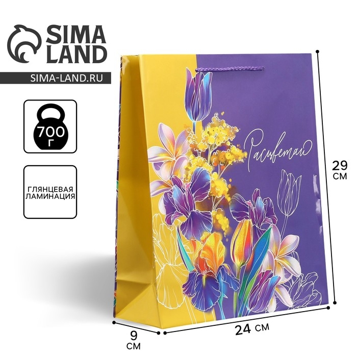 Пакет подарочный ламинированный, упаковка, «Расцветай», M 24 х 29 х 9 см