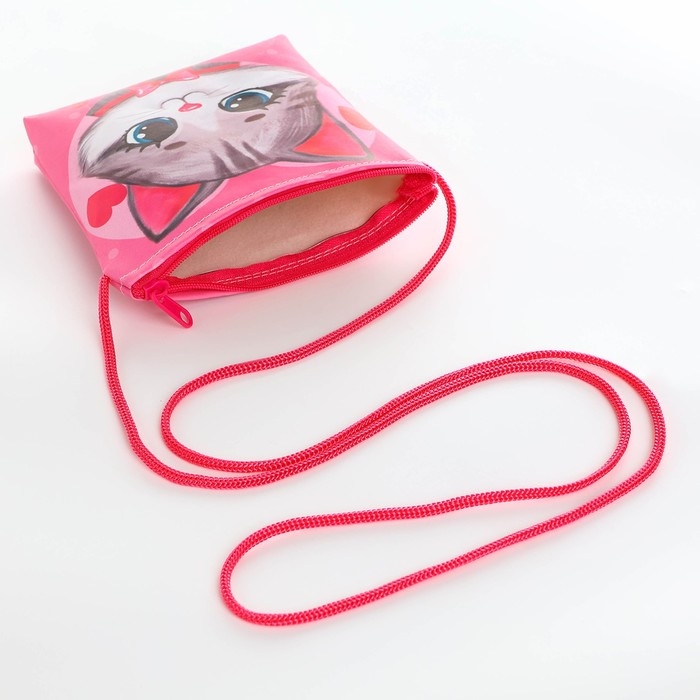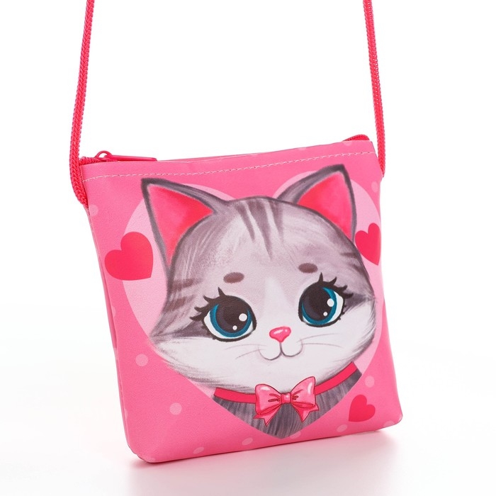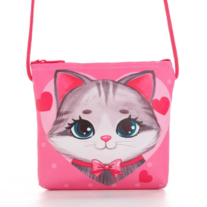 Сумка-кошелёк, для девочки через плечо "Добрый котик", 13х13х2 см