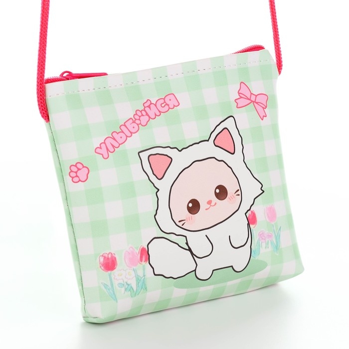 Сумка-кошелёк, для девочки через плечо "Улыбайся", 13х13х2 см