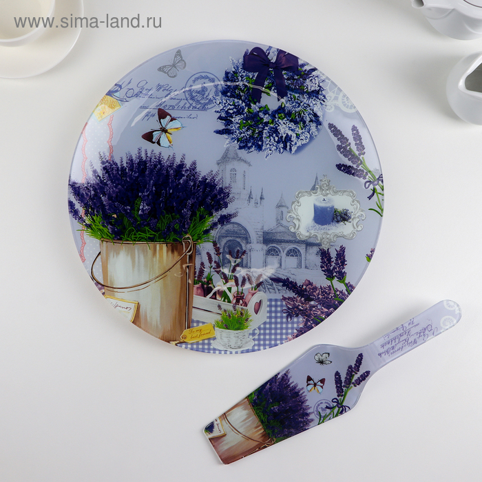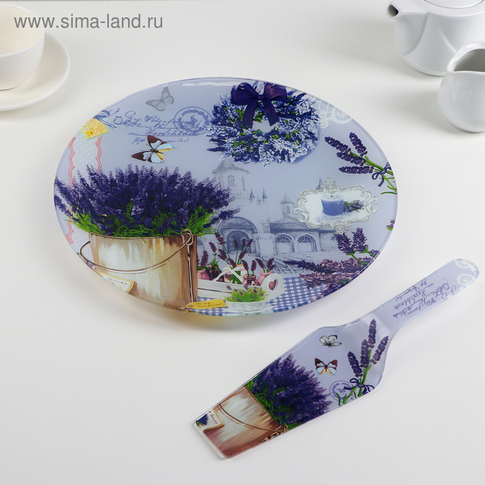 Тортовница стеклянная с лопаткой Доляна «Лаванда», d=30 см, лопатка 26,5×7 см