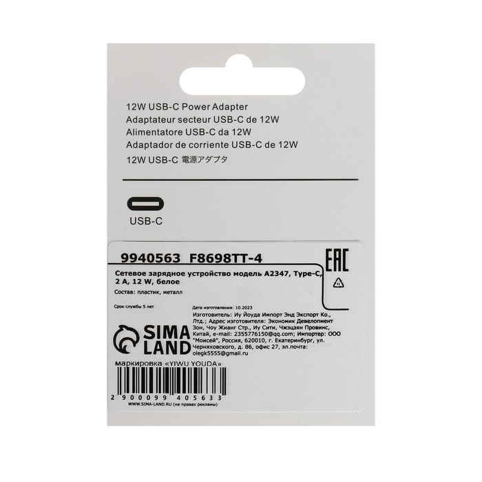 Сетевое зарядное устройство GQ-3, Type-C, 2 A, 12 W, белое
