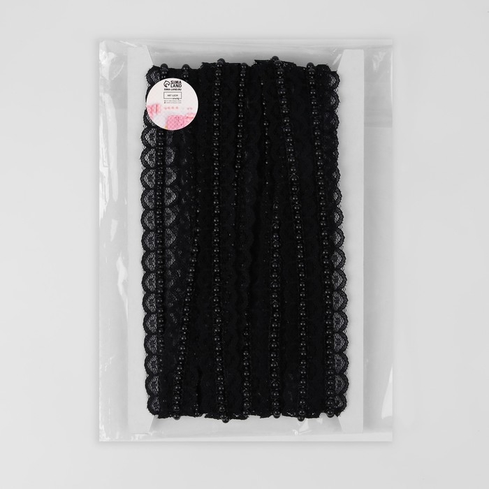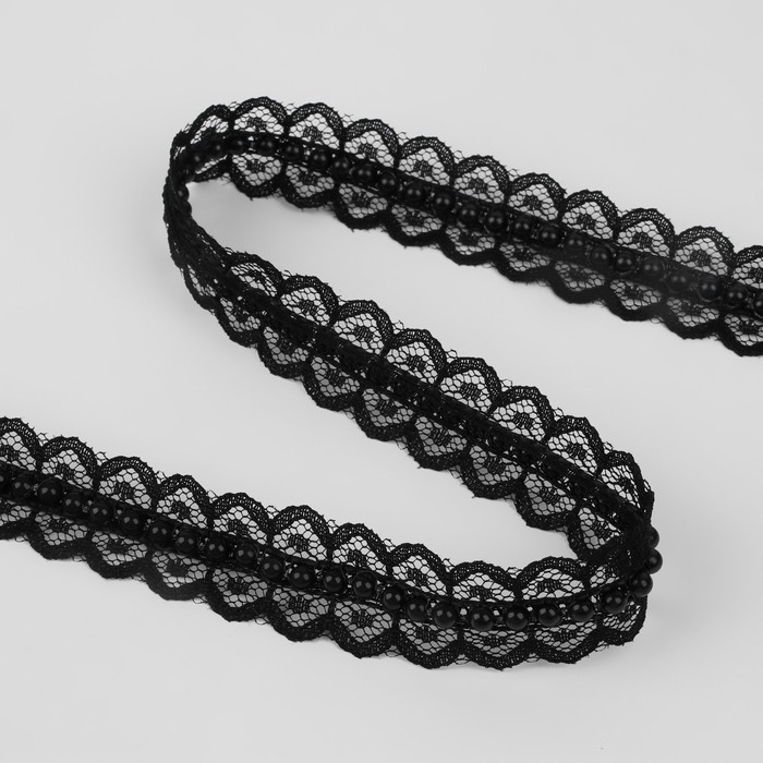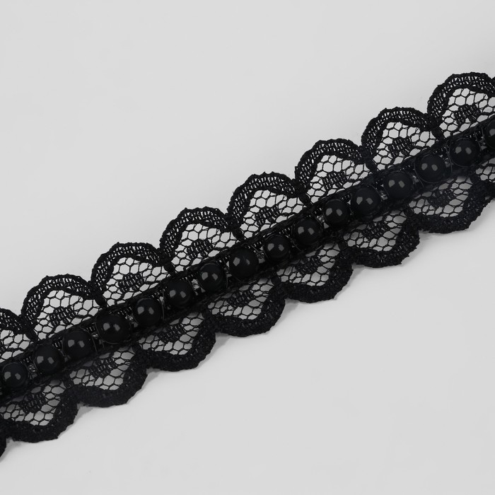 Рюш кружевной, с бусинами, 17 мм, 4,5 ± 0,5 м, цвет чёрный