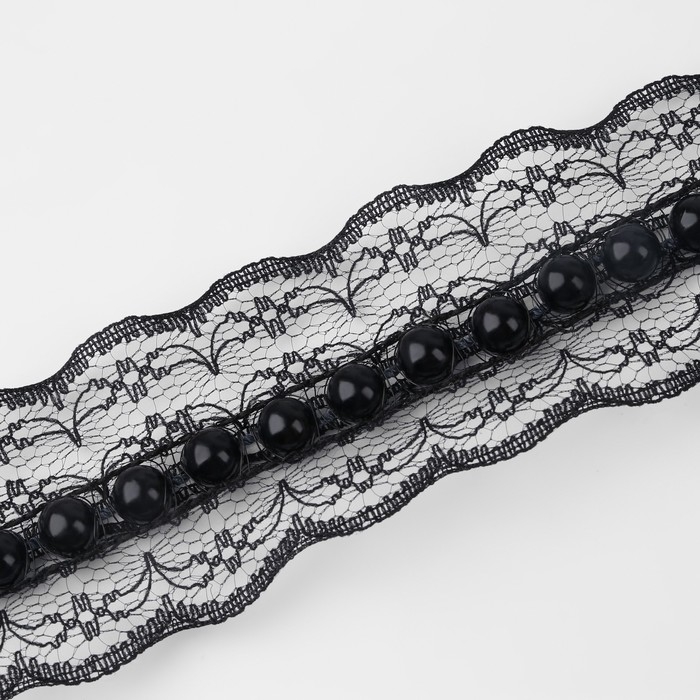 Рюш кружевной, с бусинами, 40 мм, 4,5 ± 0,5 м, цвет чёрный