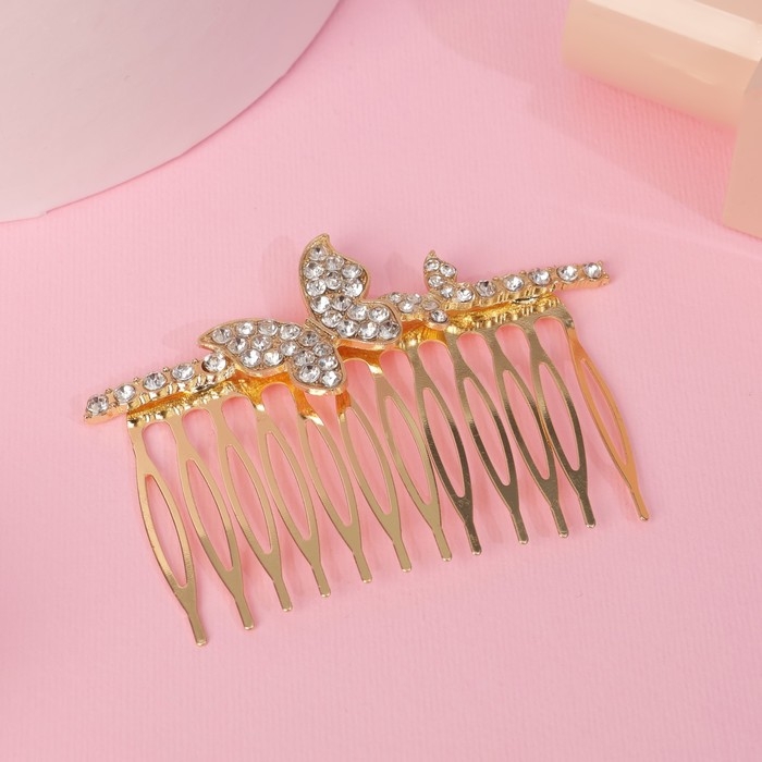 Гребень для волос "Либерти" бабочка блеск, 5х7,5 см, золото