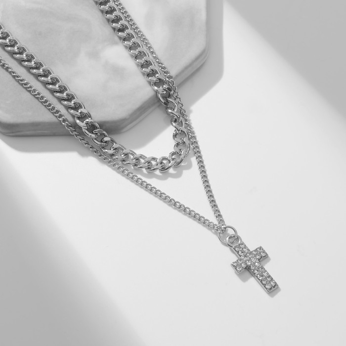 Кулон «Цепь» крест плоский, цвет белый в серебре, 40 см