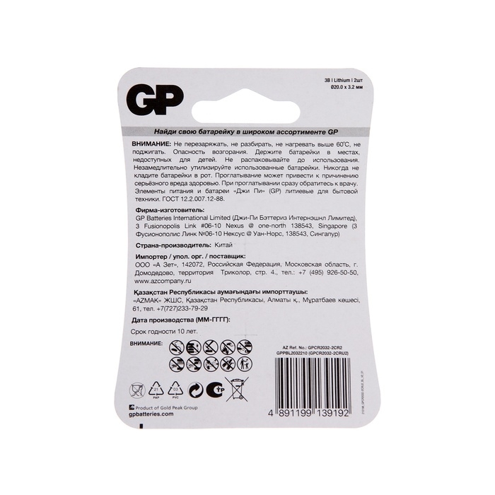 Батарейка литиевая GP, CR2032-2BL, 3В, блистер, 2 шт.