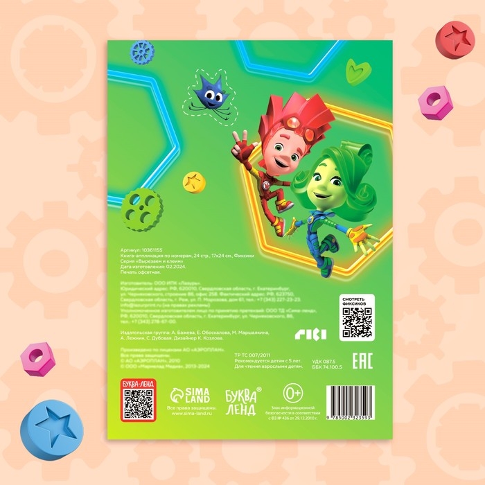 Книга-аппликация по номерам «Фиксики», 24 стр., 17 × 24 см.