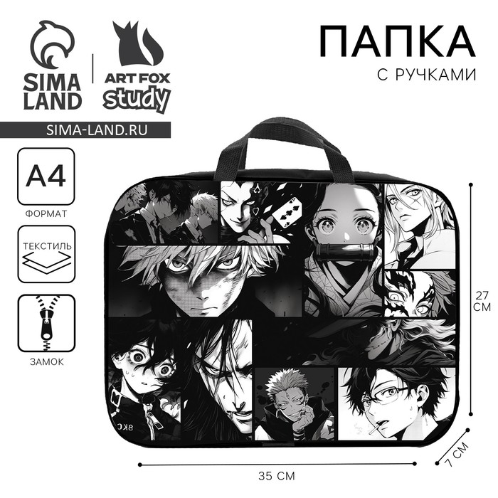 Папка для труда А4 на молнии текстиль 70мм 350 х 270 унив «1 сентября: Аниме картинка»