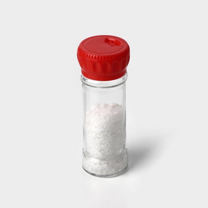 Солонка стеклянная трехпозиционная, 115 мл, цвет красный