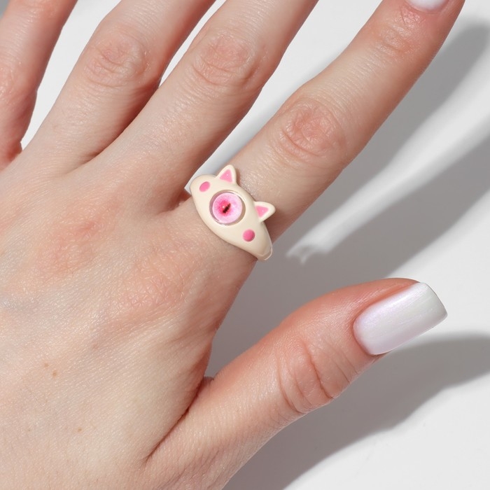 Кольцо «Монстрик» кот, цвет розовый, безразмерное