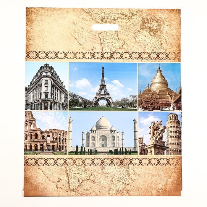 Пакет "Путешествие", полиэтиленовый с вырубной ручкой, 50х60 см, 100 мкм