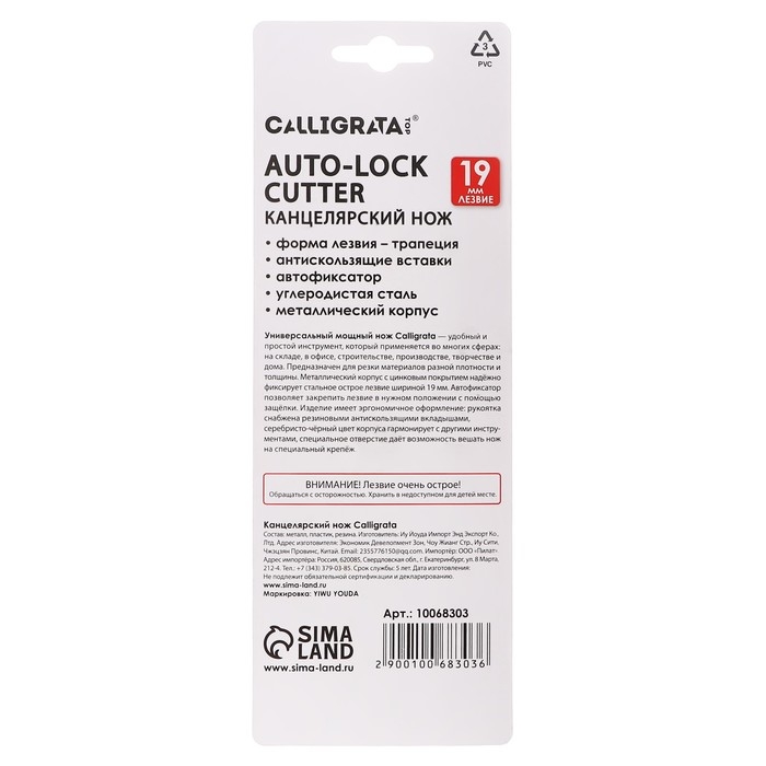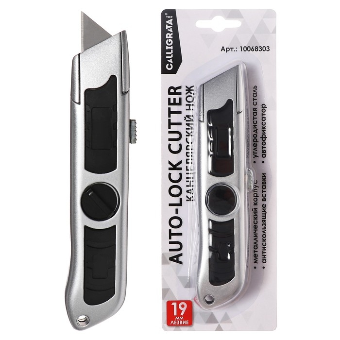 Нож универсальный трапециевидный 19мм, фиксатор, корпус металл, Zinc-alloy, TOP