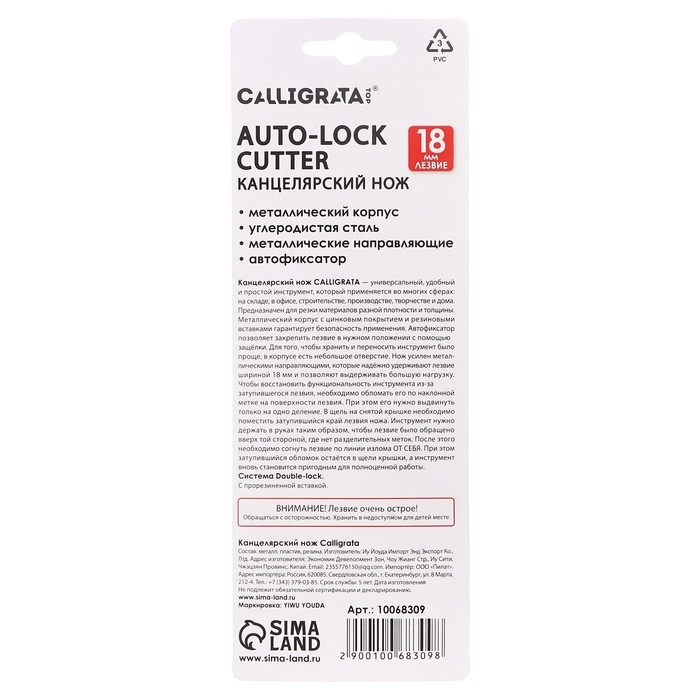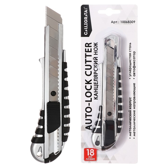 Нож канцелярский 18мм, металлический, Zinc-alloy, TOP