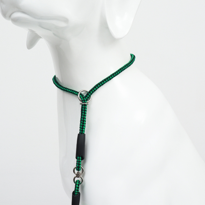Поводок-удавка 150 х 1 см, полиэстер и натуральная кожа, чёрный