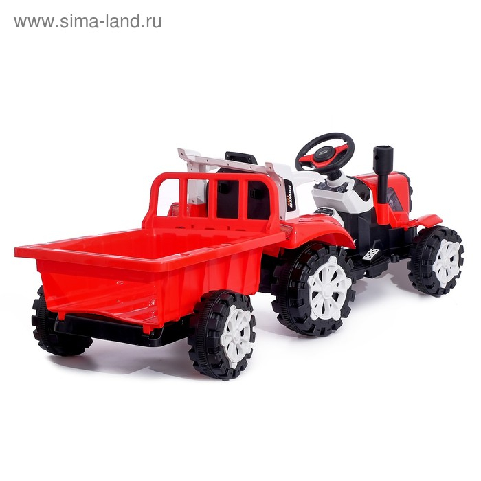 Электромобиль «Трактор», с прицепом, 2 мотора, цвет красный