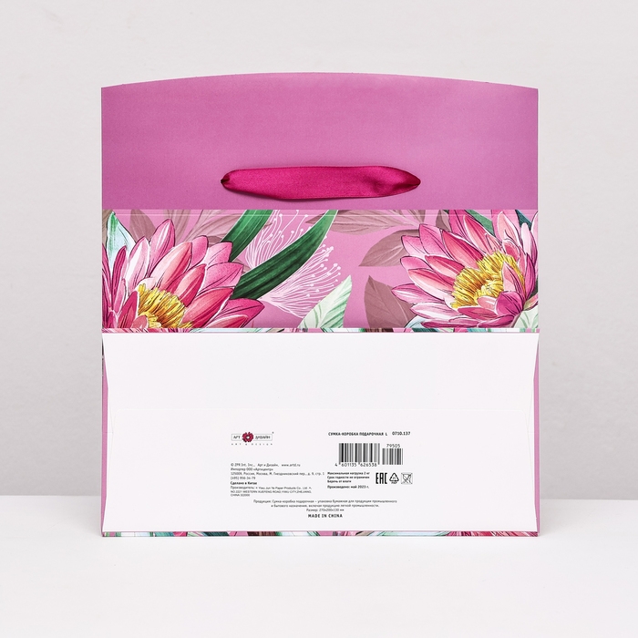 Удобные ручки позволяют легко переносить пакет, обеспечивая комфорт и удобство как во время покупок, так и при передвижении с подарками или другими предметами.