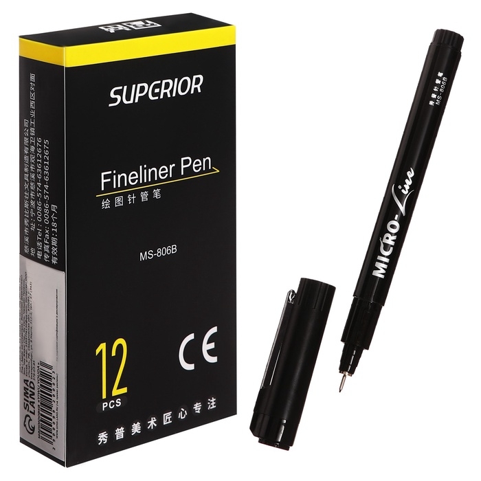 Маркер профессиональный линер черный, тонкая линия, 0.2мм