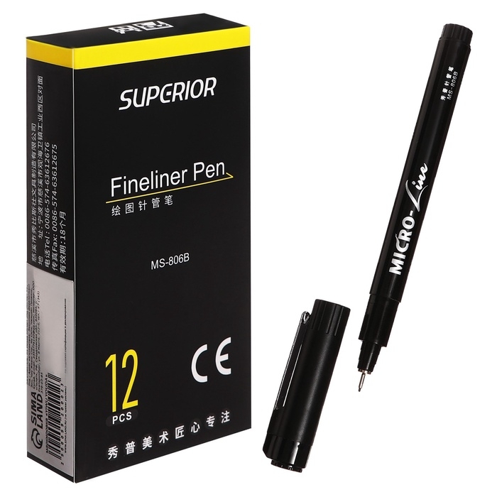 Маркер профессиональный линер черный, тонкая линия, 0.4мм