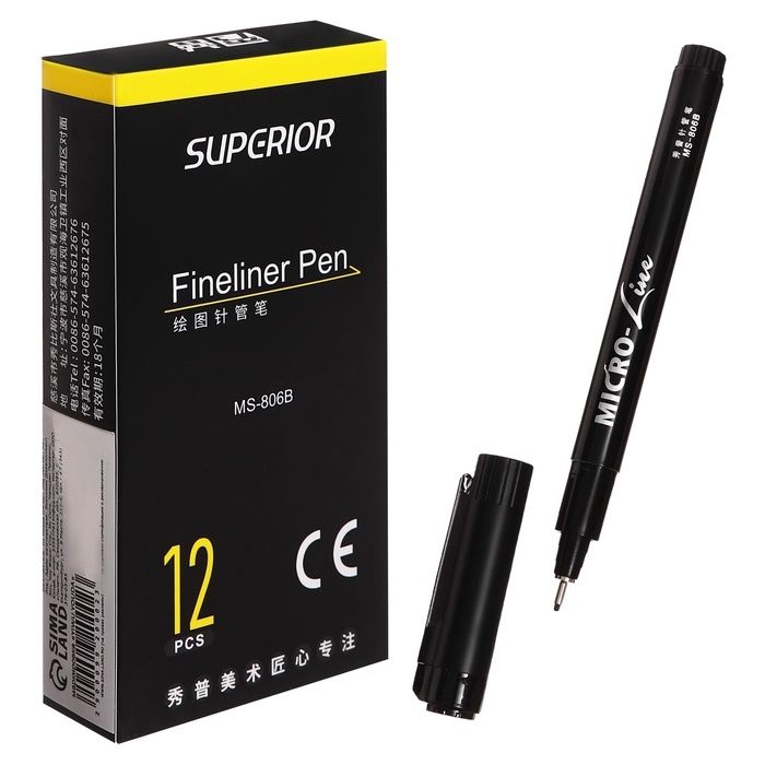 Маркер профессиональный линер черный, тонкая линия, 0.8мм