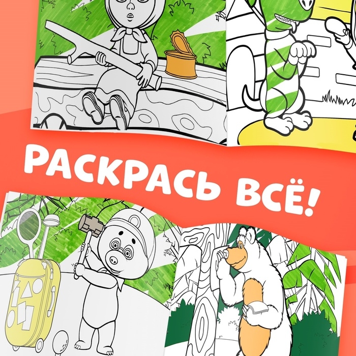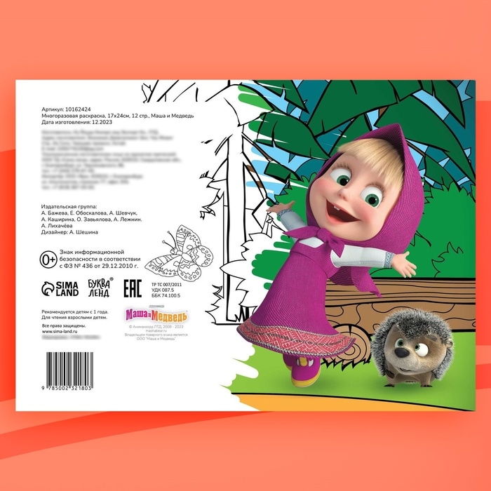 Многоразовая раскраска «Маша и Медведь», 17 × 24 см, 12 стр., с маркерами