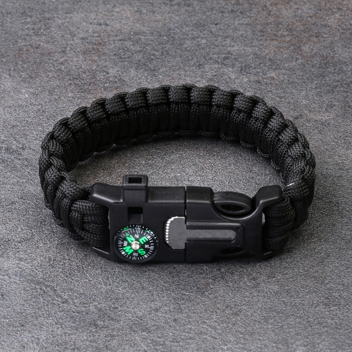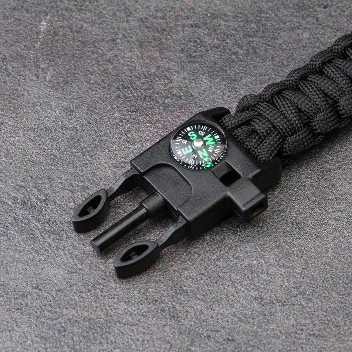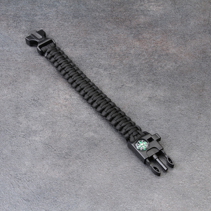 Браслет для выживания 4в1 (паракорд, компас, свисток, огниво), черный