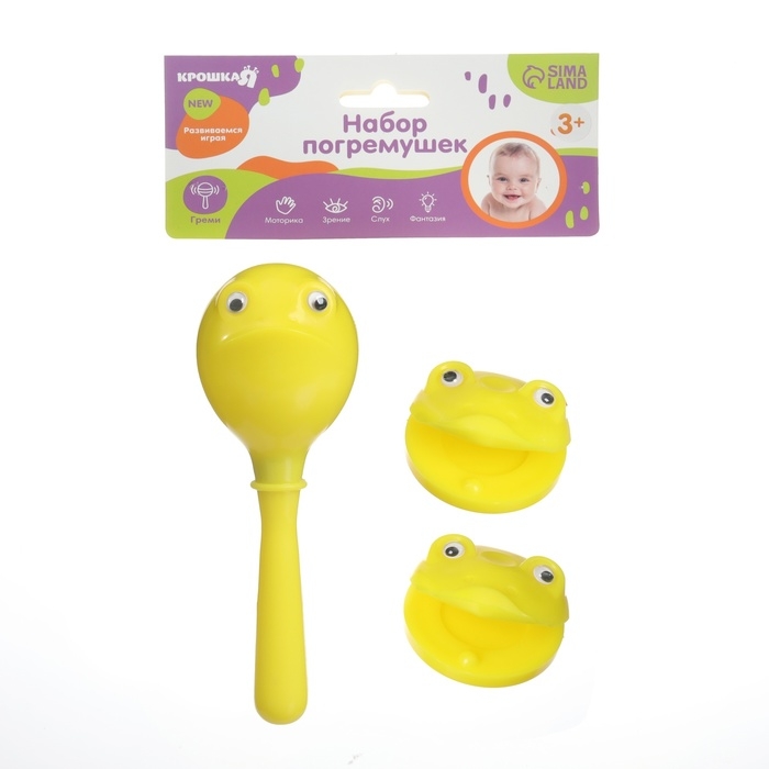 Набор погремушек «Лягушата: кастаньеты + перкуссионный маракас, 3 шт., цвет желтый, Крошка Я
