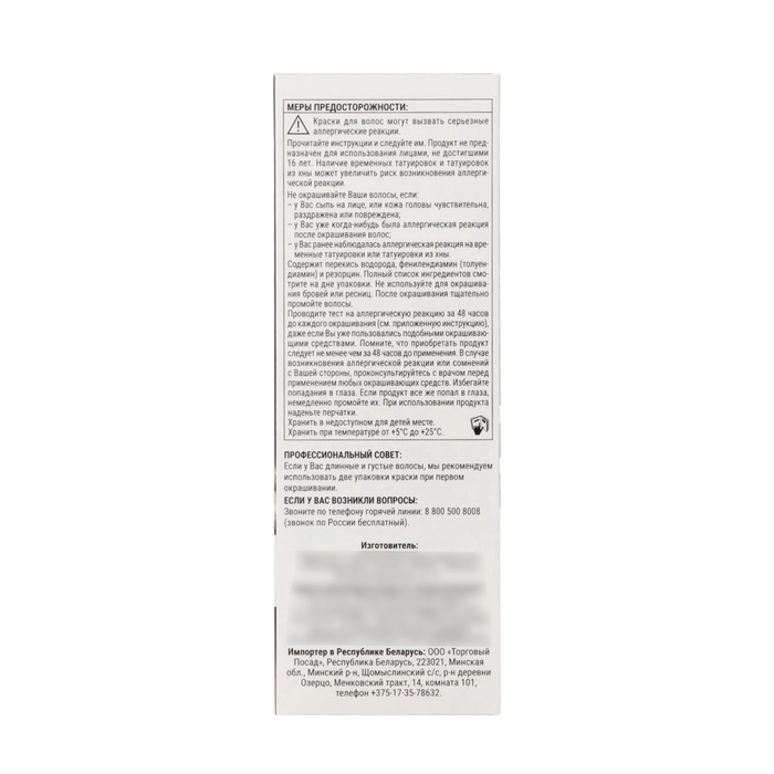 - Проявляющая эмульсия: Aqua · Hydrogen Peroxide · Cetearyl Alcohol · Propylene Glycol · Ceteareth-20 · Steartrimonium Chloride · Paraffinum Liquidum · Etidronic Acid · 2,6-Dicarboxypyridine · Disodium Pyrophosphate · Potassium Hydroxide · Isopropyl Alcohol · Sodium Benzoate