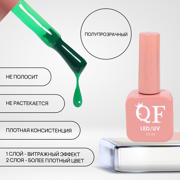 Гель лак для ногтей «STAINED GLASS», 3-х фазный, 10 мл, LED/UV, цвет (74)