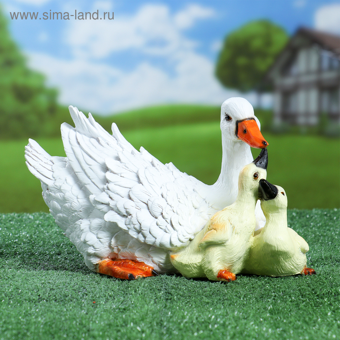 Садовая фигура "Курица наседка с цыплятами" пестрая, 28х22см