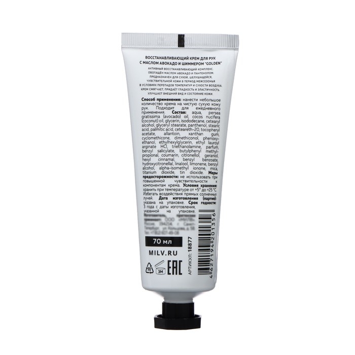 Крем для рук восстанавливающий с маслом авокадо и шиммером MILV фиалка, водная лилия, 70 мл