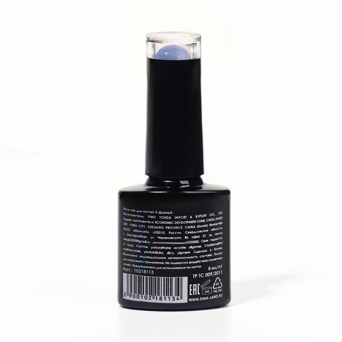 Гель лак для ногтей, с блёстками, 3-х фазный, 8 мл, LED/UV, голубой