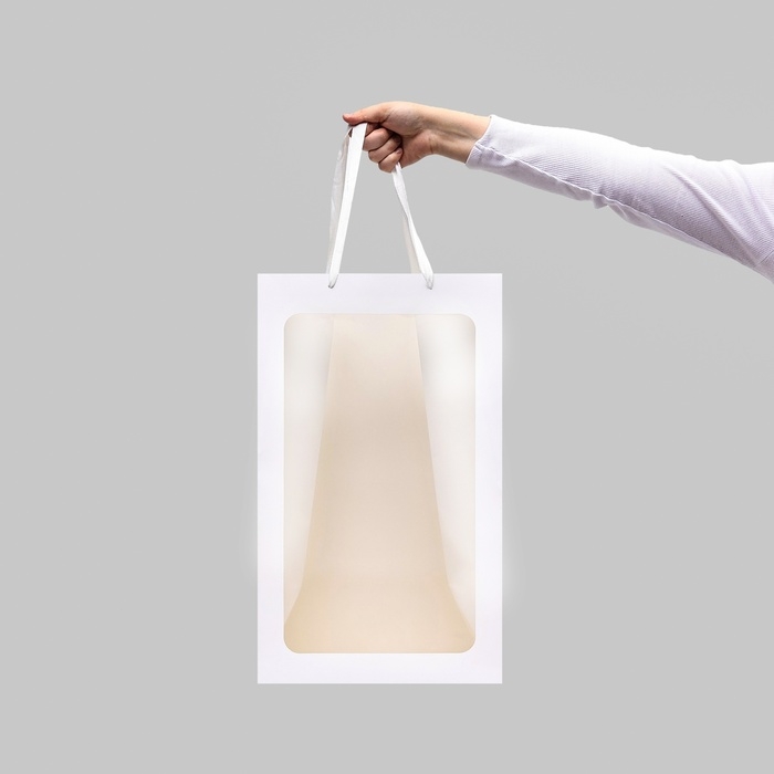 Пакет подарочный с окном, белый, 50 х 30 х 25 см