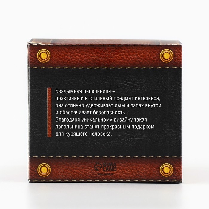 Подарочная пепельница сувенир с очисткой позволит вам всегда иметь под рукой чистую и пустую пепельницу, а так же не дышать неприятным запахом от окурков и пепла. За счёт крутящегося механизма окурки и пепел бережно сбрасываются внутрь изделия, что избавляет помещение от мусора и неприятного табачного запаха. Легко чистится и моется. Плотное прилегание особой крышки гарантирует чистоту даже при опрокидывании пепельницы. Пепельница дымоуловитель будет оригинально смотреться в любом интерьере. Чтобы не портить здоровье некурящих людей, особенно детей и женщин, бездымная пепельница наилучший выход. Пепельница выполнена из металла и пластика, Упаковка – индивидуальная картонная коробка.