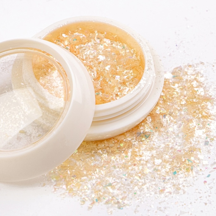 Опаловая пудра для декора в жёлтом цвете от Queen Fair — это идеальный способ добавить уникальные акценты в ваш маникюр. Этот декоративный элемент позволяет создавать эффектный дизайн ногтей с игрой света и насыщенными оттенками.