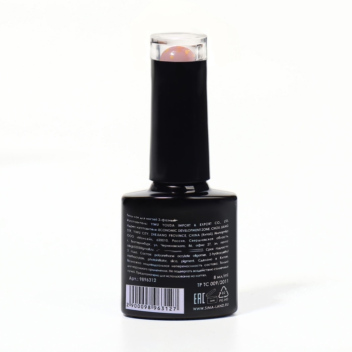 Гель лак для ногтей, с блёстками, 3-х фазный, 8 мл, LED/UV, розовый