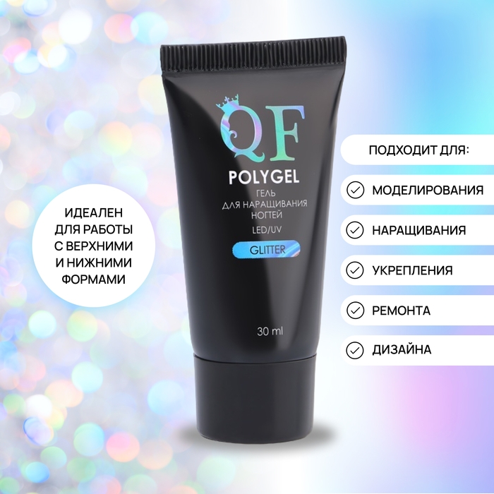 Полигель для наращивания «GLITTER», 3-х фазный, 30 мл, LED/UV