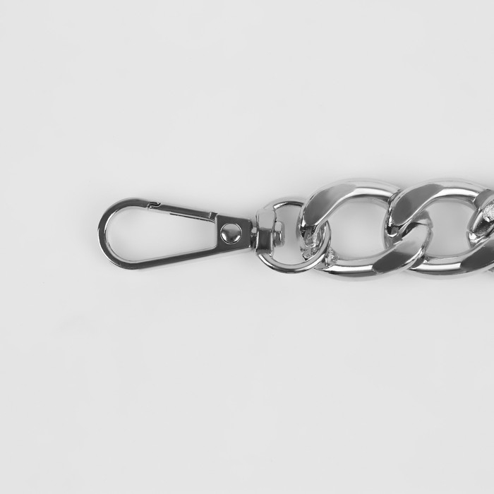 Цепочка для сумки, с карабинами, металлическая, плоская, плотное плетение, 15 × 10 мм, 30 см, цвет серебряный