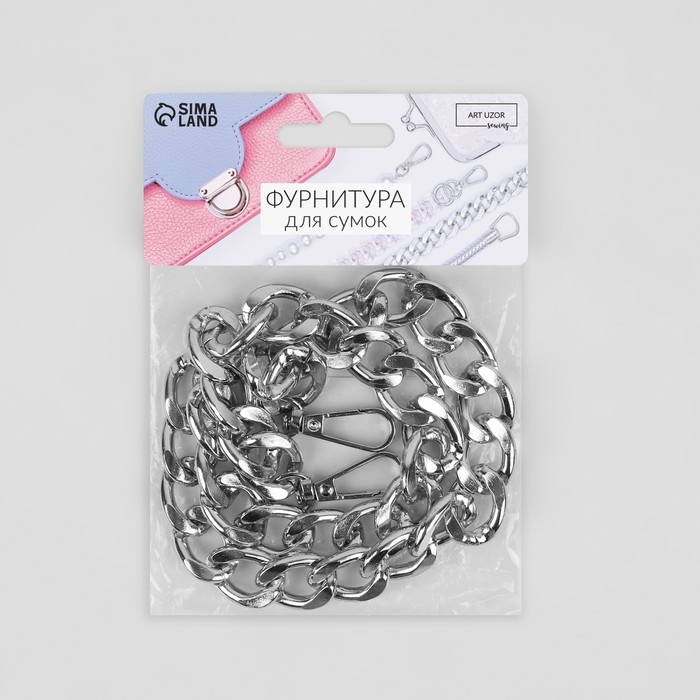 Цепочка для сумки, с карабинами, железная, 22 × 16 мм, 60 см, цвет серебряный