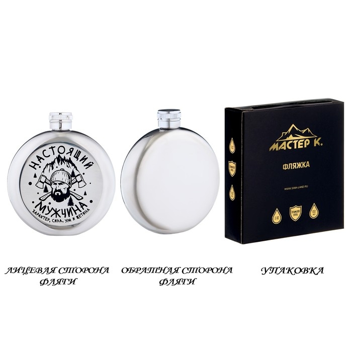 Фляжка для алкоголя "Настоящий мужчина", нержавеющая сталь, подарочная, 150 мл
